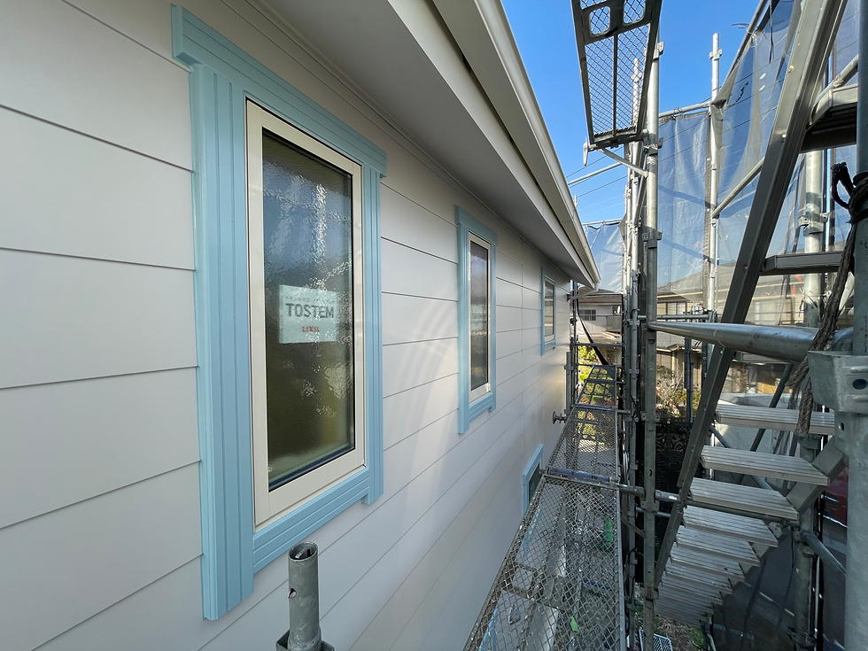 羽村市S様邸・新築軒天、木部窓枠,木部扉,木部階段,サンメント【木製モールディング】